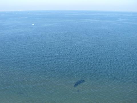 飛んでる自分の影が、海に映っってます♪